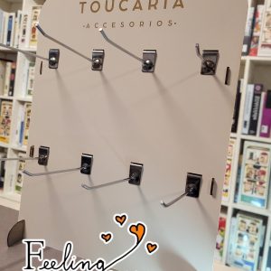Posee 10 ganchos metálicos de 15 cm distribuidos en dos filas de 5 ganchos cada uno